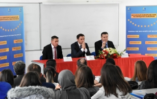 Whereas, the Rector of the University of Tetova, Prof. Dr. Vullnet Ameti, thanked the Deputy Prime Minister, Bujar Osmani, and the Government of Macedonia for the continuous support given to our university, wishing them success in their path to the country’s membership in the Euro-Atlantic structures. “On behalf of the University of Tetova, I would like to express my gratitude to the Deputy Prime Minister, Bujar Osmani, and the Government of Macedonia for the continuous support they have given and continue to give to our university. Today we have here the Deputy Prime Minister for European Affairs, Bujar Osman, who together with the Faculty of Law and the Student Parliament will promote a project for students, where initiatives will be taken to set up an idea, a vision for the integration and the path of Euro-Atlantic processes. On behalf of the University, I wish the Government of Macedonia success in its mission of our country’s membership in the European Union and NATO soon”, emphasized the Rector, Prof. Dr. Vullnet Ameti.