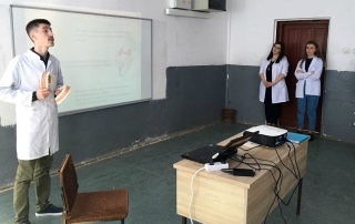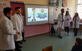 During the meeting with primary school students, dentistry students presented them with methods of brushing teeth, care for oral hygiene and oral health in general, foods to be consumed, making comparisons between teeth-damaging and those that do not harm them. Symbolically, students distributed to students some gifts like toothbrushes and toothpaste as well as leaflets with detailed information about oral health.