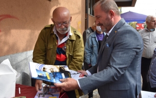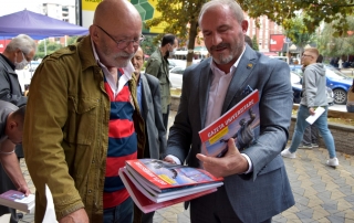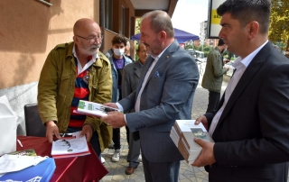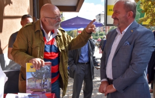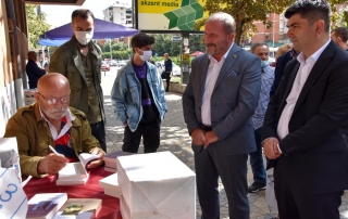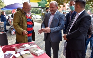 Rector of the University of Tetova, Prof. Dr. Vullnet Ameti thanked the actor Çun Lajçi for the initiative he had taken to sell his works in some of the Albanian cities of the country and to meet the Albanians of these regions. “I would like to have you today in the premises of our University to offer these publications to the academic staff and students, but as you said earlier, that meetings with citizens in city squares give pleasure and special feelings, I will not take much time, in order for other citizens to meet and talk with you, because your personality is not only honored and shows great respect in Tetovo but you also have the respect of the whole Albanian nation. Every time you come to Tetovo, never forget that you have a guest house, the University of Tetova, which was founded and raised by Albanians, it is your hearth and you are welcome whenever you want” – says among others the Rector of UT, Prof. Dr. Vullnet Ameti.