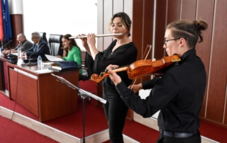 Ky simpozium u përmbyll me një pikë artistike nga studentët e Fakultetit të Arteve të Universitetit tonë, teksa më pas profesorët e caktuar vijuan me seancat e punimeve shkencore, të cilët folën mbi jetën dhe veprimtarinë e Rafi Halilit.