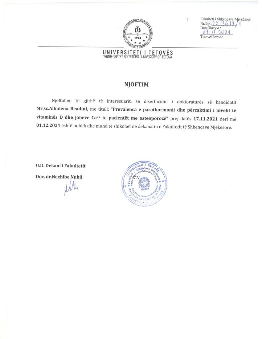 Njoftim Besar Huseini2021-11-24T18:53:59+02:00Nëntor 24, 2021| Related Posts Njoftim Dhjetor 07, 2022 Buletini nr. 213 Dhjetor 06, 2022 Njoftim Nëntor 21, 2022